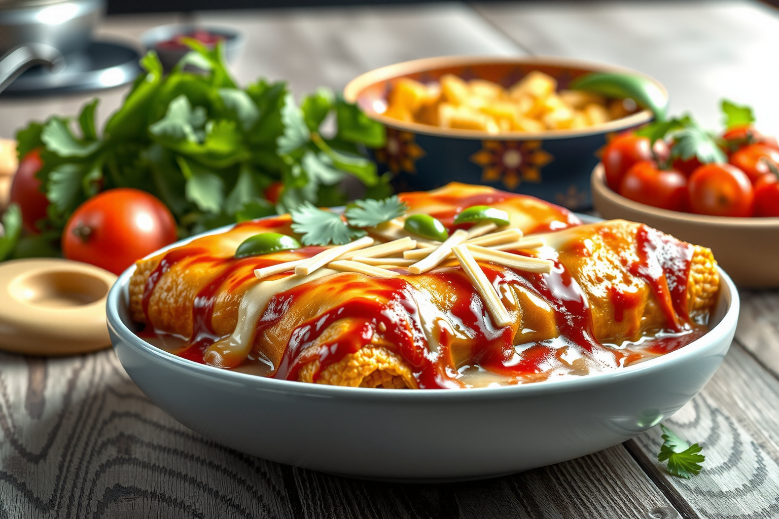 Add some protein: To make your enchiladas a bit more filling, you could add some shredded chicken, beef, or pork to the sauce.