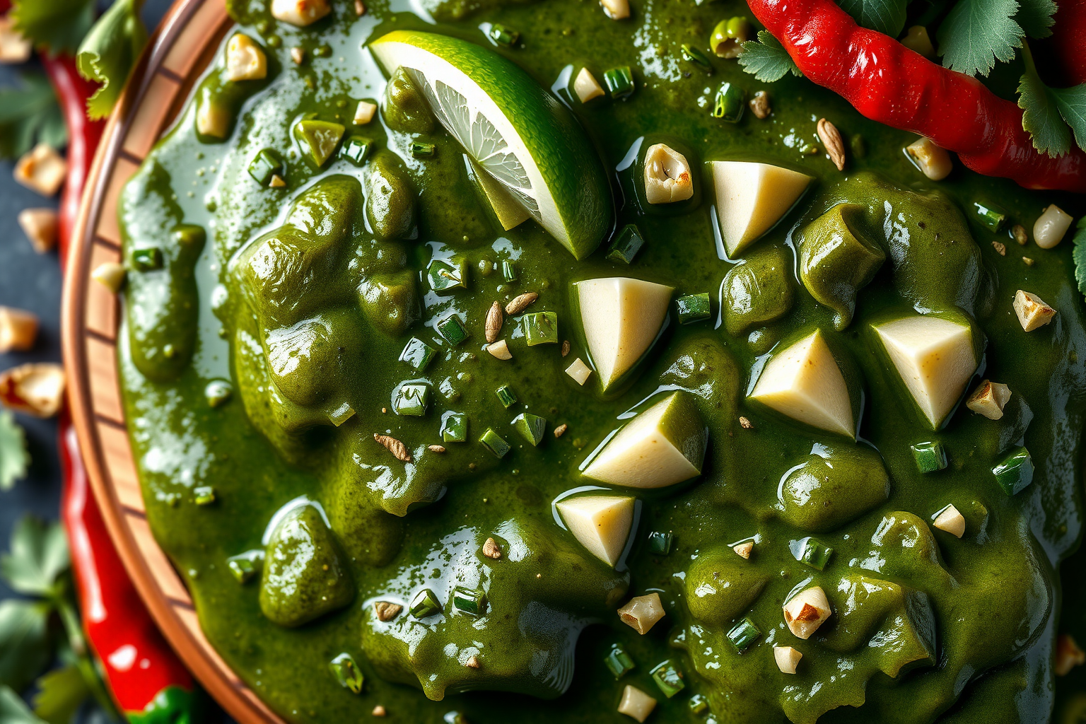 Another classic Mexican green sauce is Mole Verde. It’s made with tomatillos, pumpkin seeds, onions, and a variety of fresh cilantro and flavored leaves. Mole Verde has a slightly sweet and fragrant flavor that’s perfect for marinating meats or pouring over enchiladas. Make sure to take your time when making Mole Verde, as the traditional recipe calls for toasting and grinding the pumpkin seeds and chilies. The extra effort will definitely be worth it for the mouthwatering flavor.